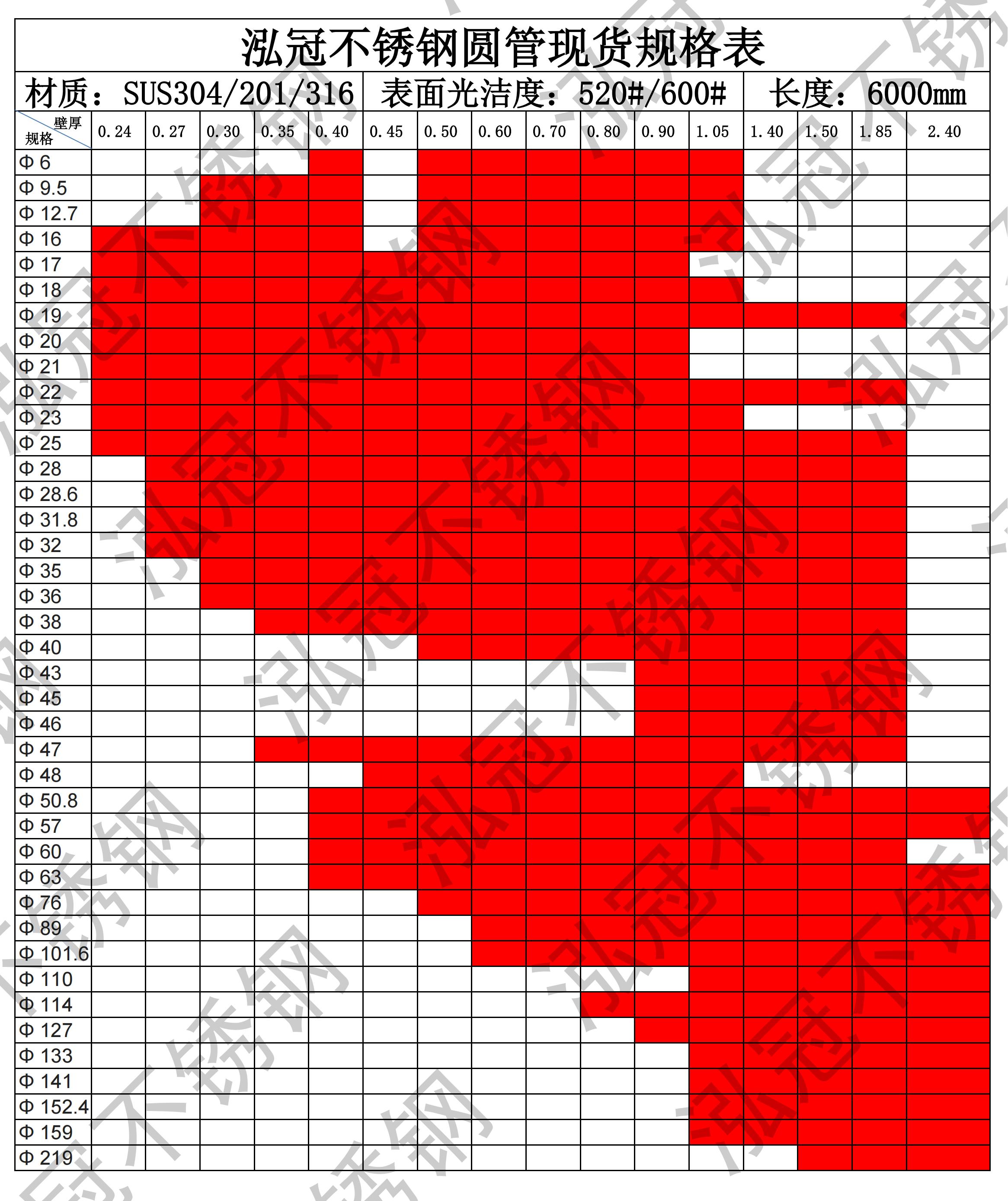 泓冠不銹鋼圓管現貨規格表
